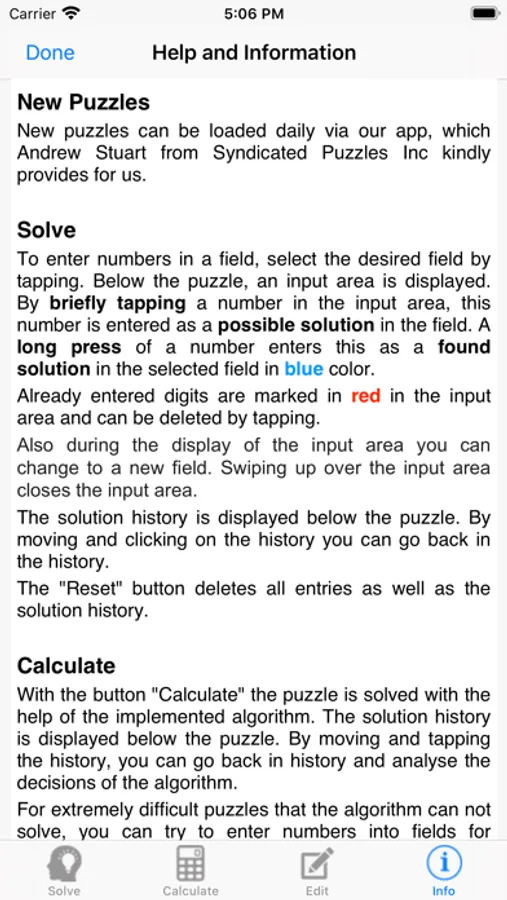 We thank Jeff Widderich and Andrew Stuart, who gave us permission to use the name "Str8ts". A highlight, of course, is the link from Andrew, through which he daily provides us with new puzzles for the app.