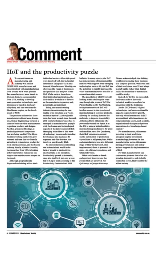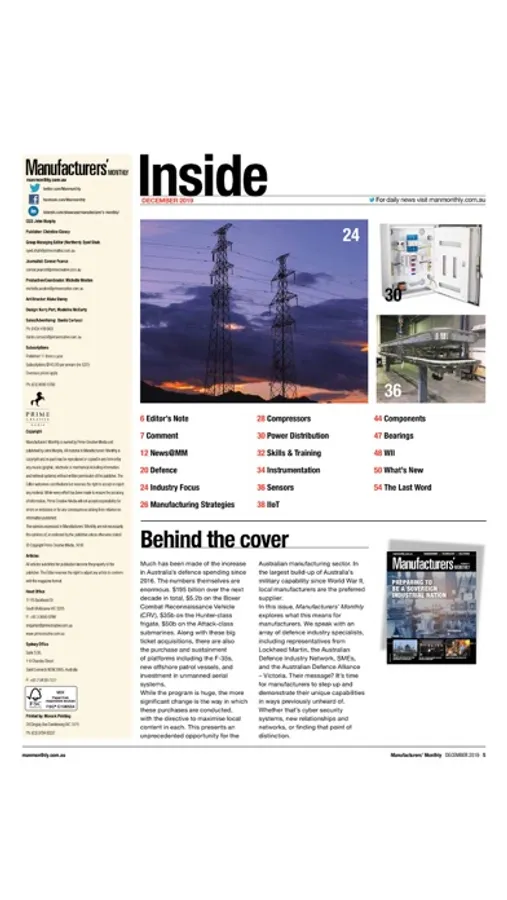 Recognised for its highly credible editorial content and acclaimed analysis of issues affecting the industry, Manufacturers' Monthly has informed Australia's manufacturing industries since 1961. With a circulation of over 15,000, Manufacturers' Monthly content critical information that senior & operational management need, covering industry news, management, IT, technology, and the latest products and solutions.