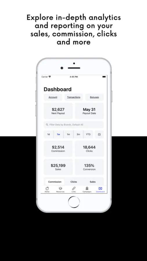 * Monitor in-depth analytics around your sales, commission, clicks and more.