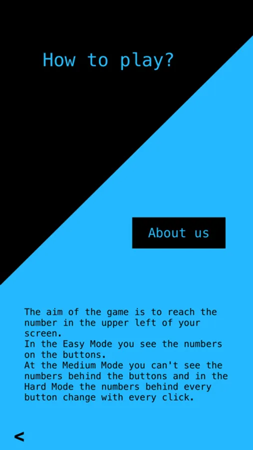 In the Easy Mode you see the numbers on the buttons. At the Medium Mode you can't see the numbers and in the Hard Mode the numbers behind every button change with every click.