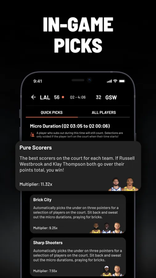 2) Enjoy the excitement as your predictions play out in real-time, lasting from just a few minutes up to the entire game.