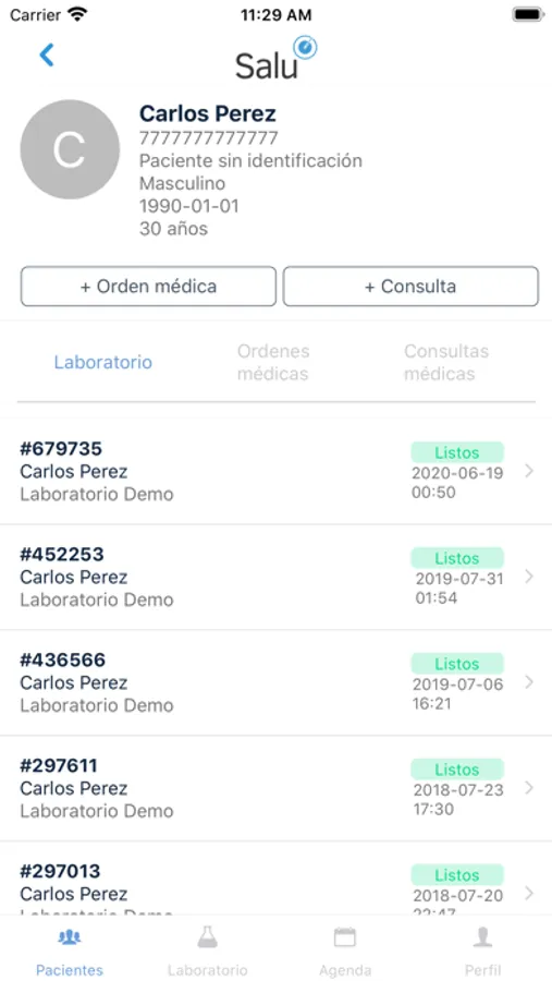 Aplicación para médicos donde podrán consultar los resultados clínicos de sus pacientes.