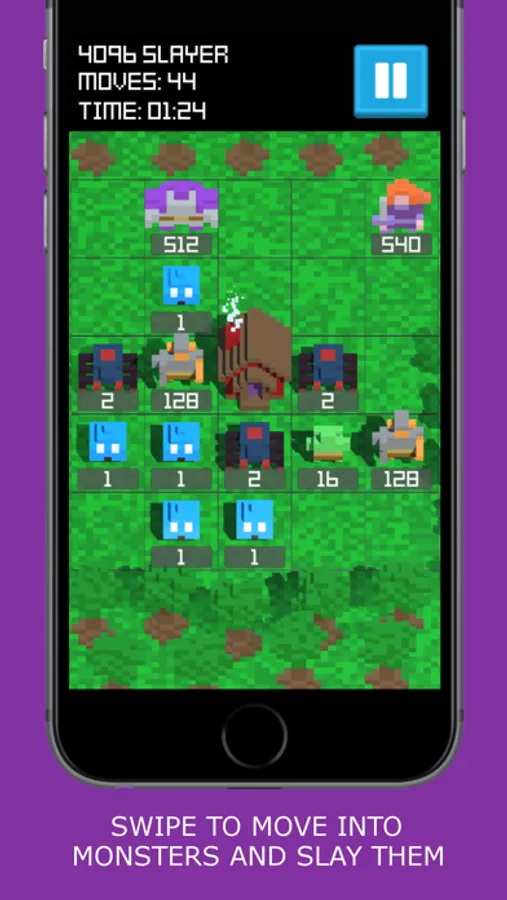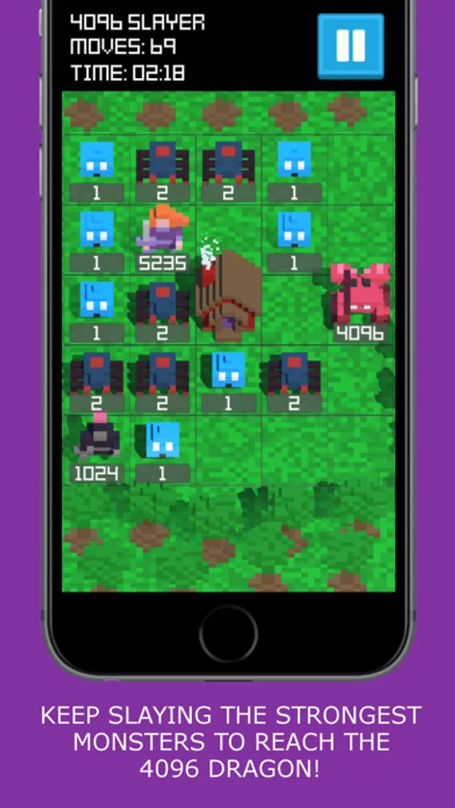 4096 Slayer is a monster slaying puzzle game. Every monster you slay increases your level and you can only slay monsters with a lower level than you.