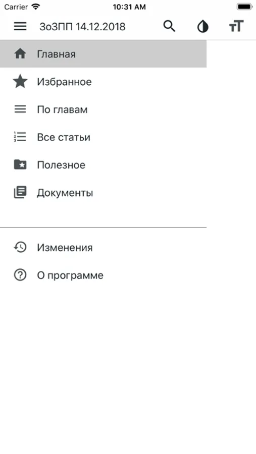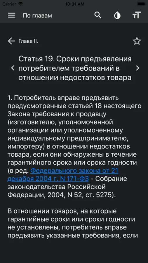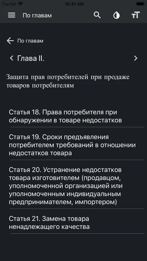 Перелистывание между статьями вправо-влево, аналогично разделы и главы
