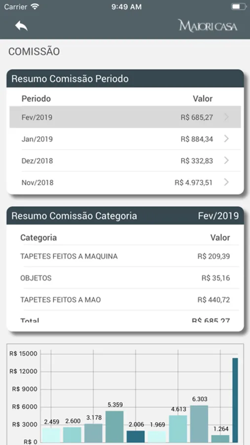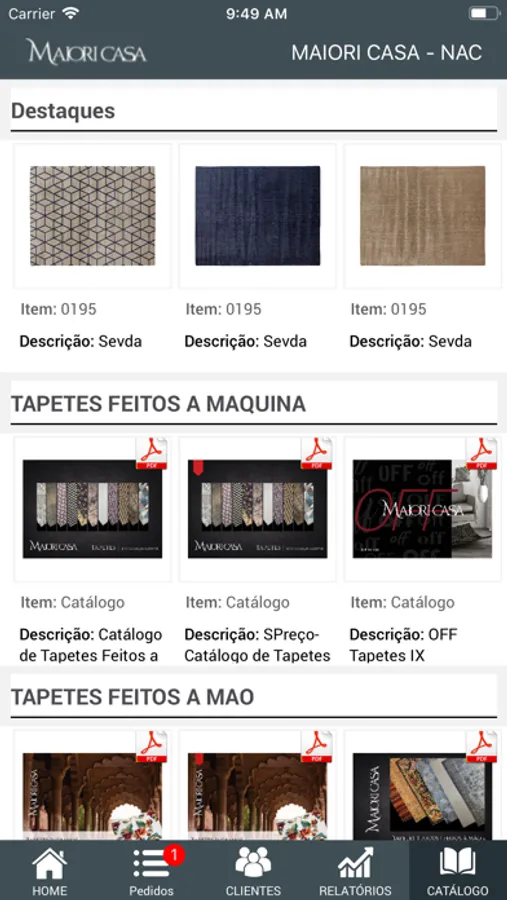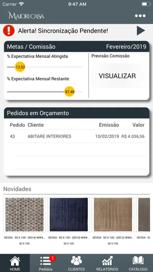 Visualize catálogos, metas, comissões e relatórios sobre suas vendas.