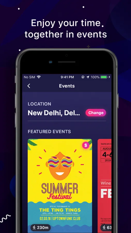 Verification: Your profile will be verified using a photo and a government ID. Once verified, you'll have an option to meet only verified people and attend exclusive events only for verified people!