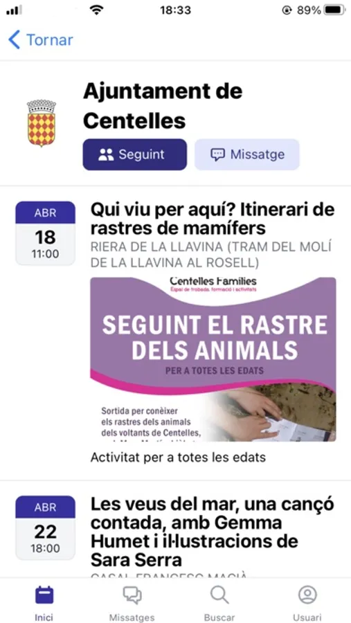 Tindreu a l'abast i de manera ordenada tota la informació de qui seguiu i, si ho accepteu, podreu rebre notificacions de notícies, missatges i nous esdeveniments directament de l'organitzador.