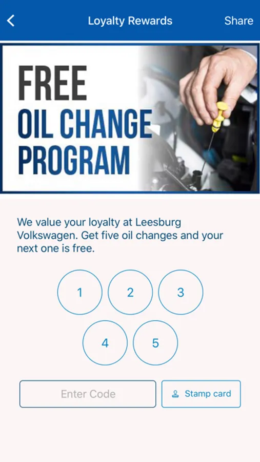 - Loyalty Rewards: earn a free oil change by stamping your digital card each time you visit our service center and track your rewards.