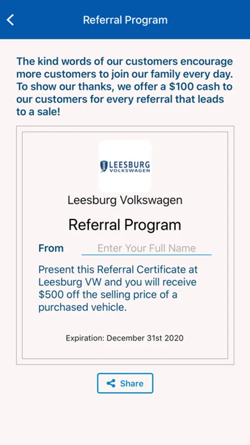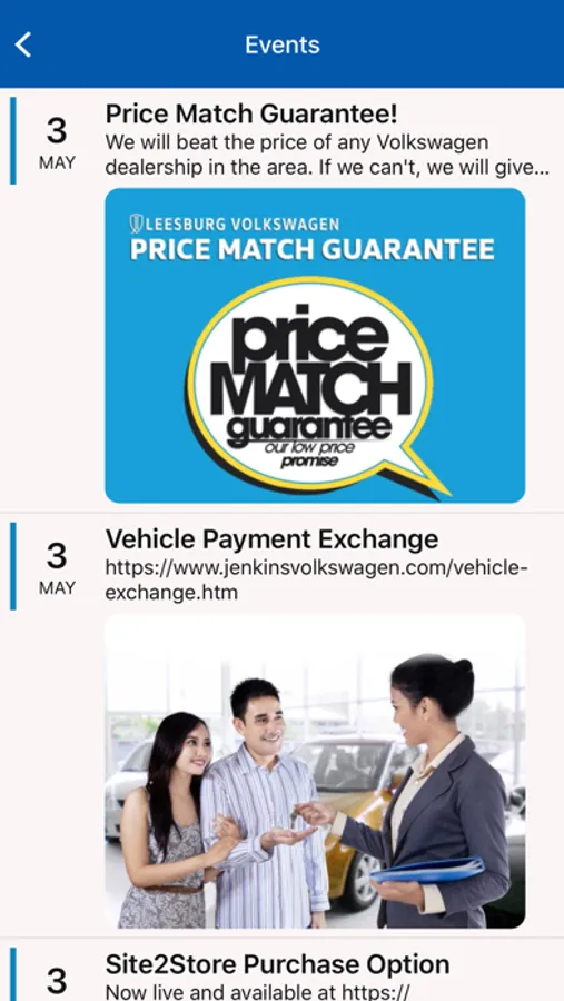 Leesburg Volkswagen dealership loyalty app provides customers with an enhanced user experience. The mobile dealership app provide customers with relevant specials and loyalty offers. Key features include:
