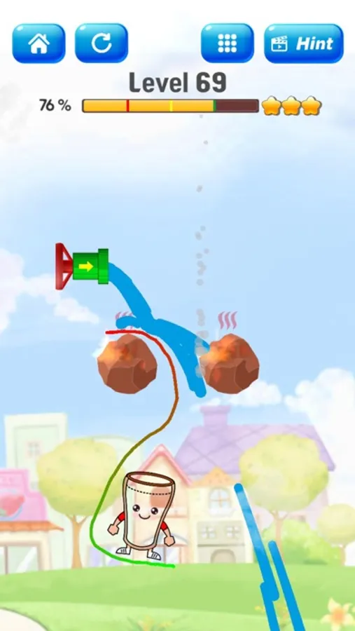 1. The glass is sad because it's empty. Your job is to draw a weave the line to make the glass filled up with liquid and smile again! Draw ultra sharp lines freely to complete levels, you will need your wisdom and imagination.