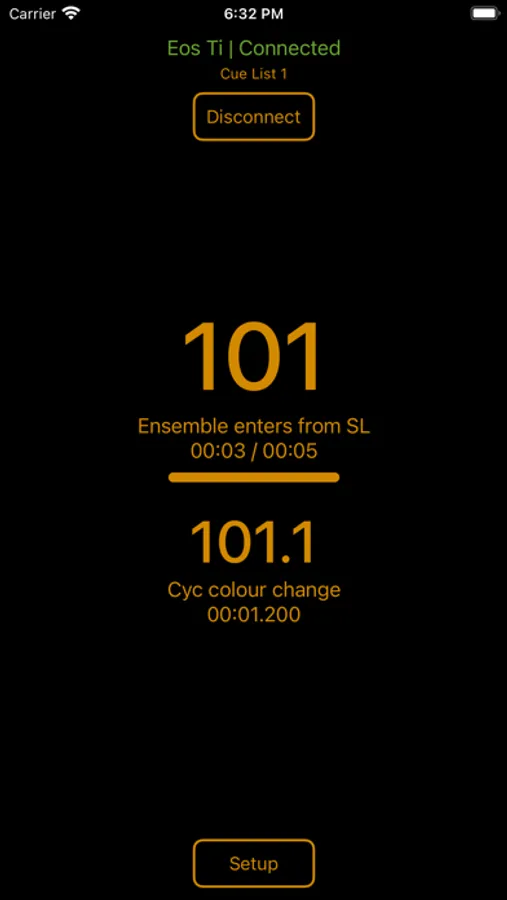 Designed with simplicity in mind, CueTrack displays active and pending cues, along with times and labels, clearly and concisely. The interface is thoughtfully designed to produce minimal light in dark production environments.