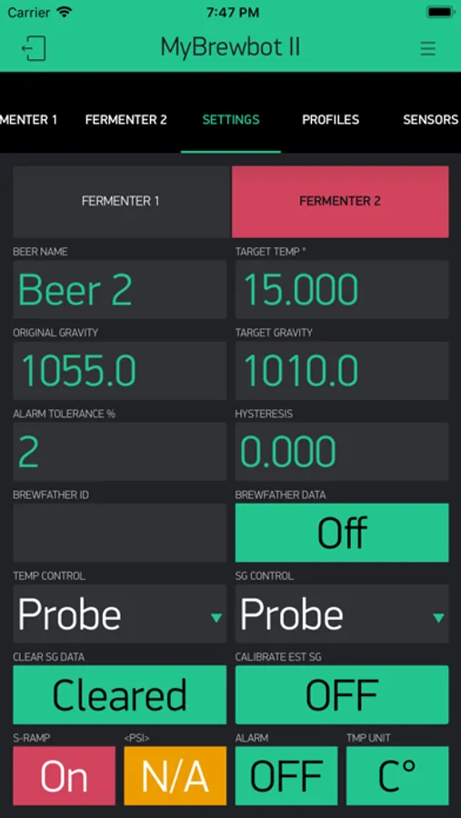 Data logging is enabled for Ubidots and BrewFather and the controller app also has data logging capability. Further data links will be established with other brewing applications as they release their APIs.