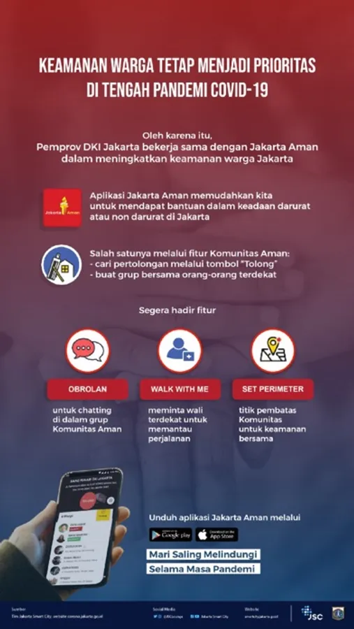 Jakarta Aman merupakan layanan tambahan dari Telepon Layanan Darurat 112 BPBD DKI Jakarta yang memungkinkan penggunanya melaporkan keadaan darurat melalui Smartphone