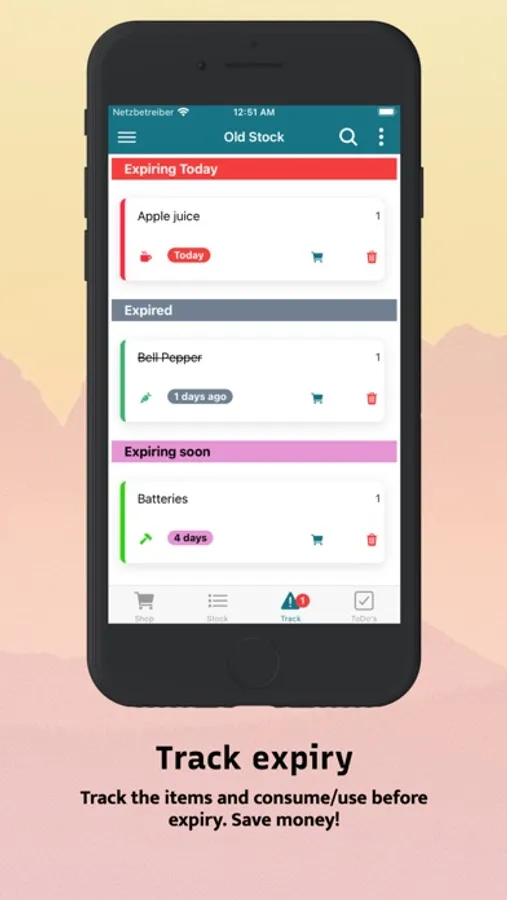 - Track perishable items on your inventory and consume them on time. Save your money!