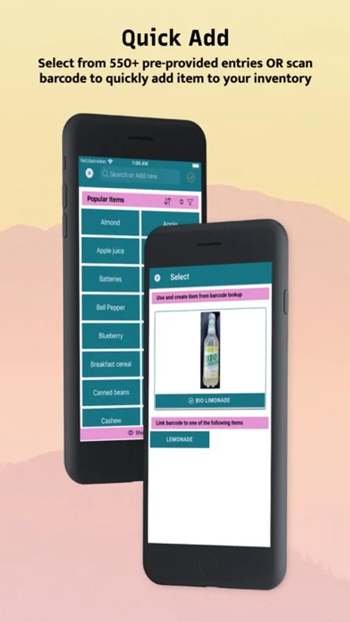 - Pre-loaded items : You can select from over 550+ pre-loaded items that are available and quickly add them to your shopping list or inventory