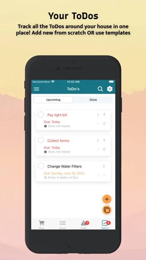 - Track all the ToDos and Tasks around the house and make sure you never forget them