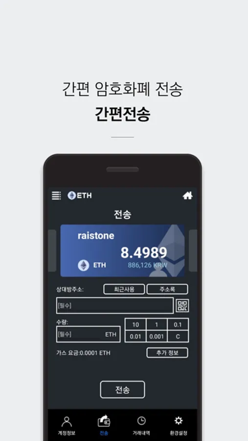 - 사용자 편리성을 고려한 송금 기능 (QR 스캔을 통한 송금 주소 입력, 수수료 자동 계산 및 수동 설정 기능 등)