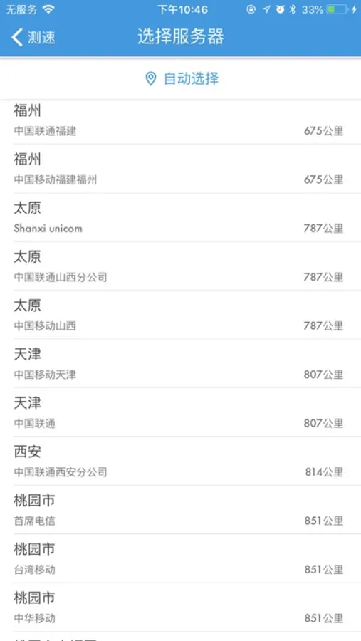 - 测速点智能选择,也可以自己手动选择测试点进行测试。