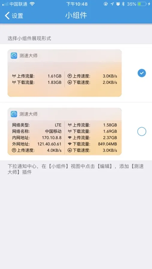 - 提供多个实时小组件展示形式,不用打开软件也可以掌握实时网络状况。