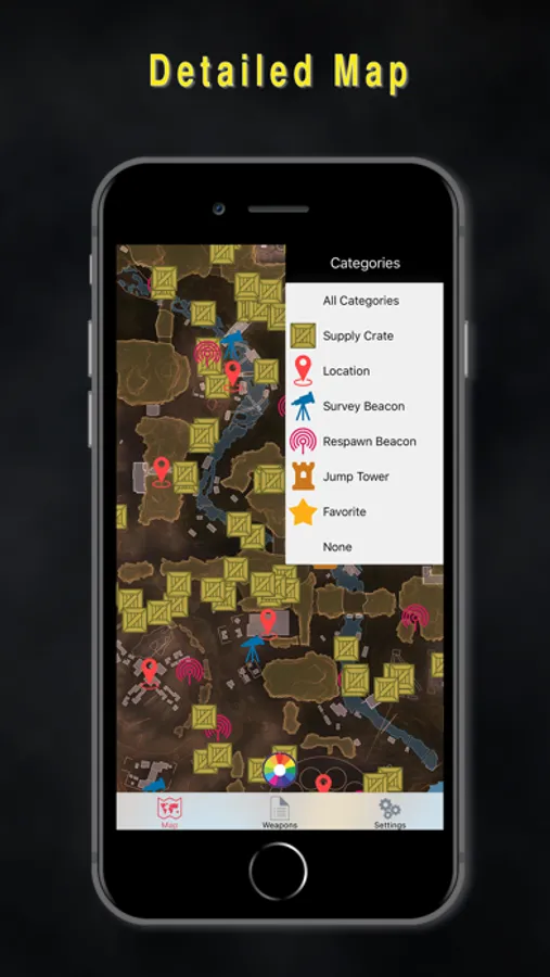The map contains all the known locations, respawn beacons, survey beacons, crates and jump tower discovered so far.