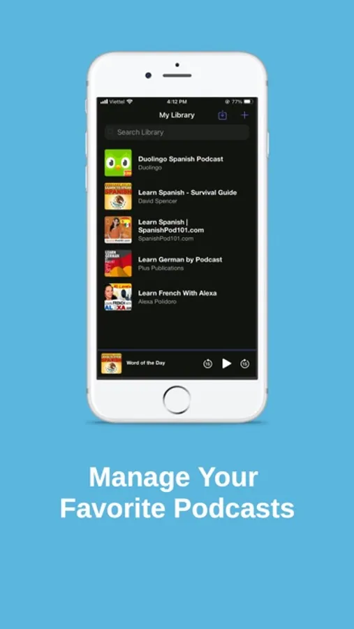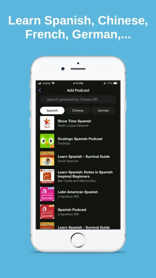 - Find your favorite podcasts with integrating iTunes searching feature.