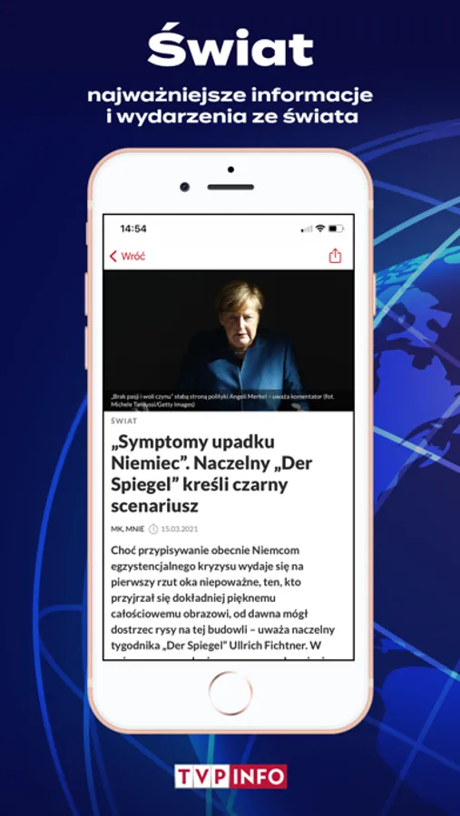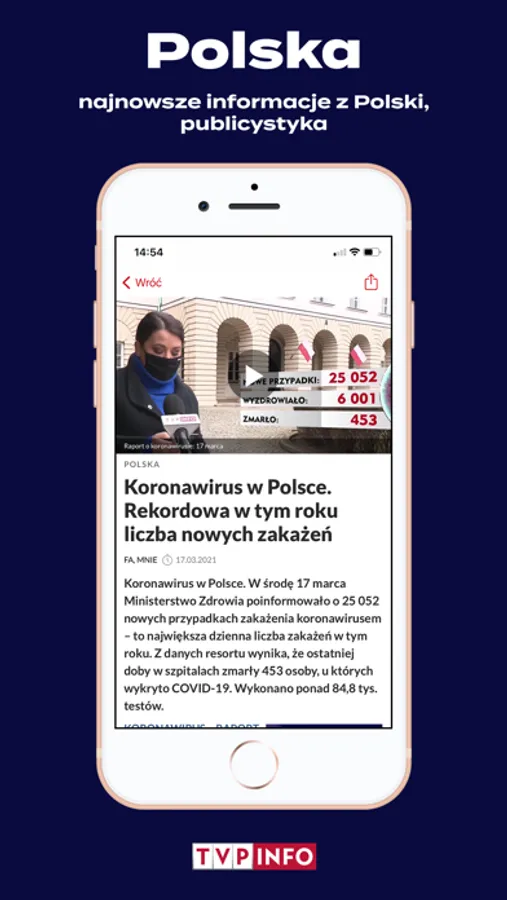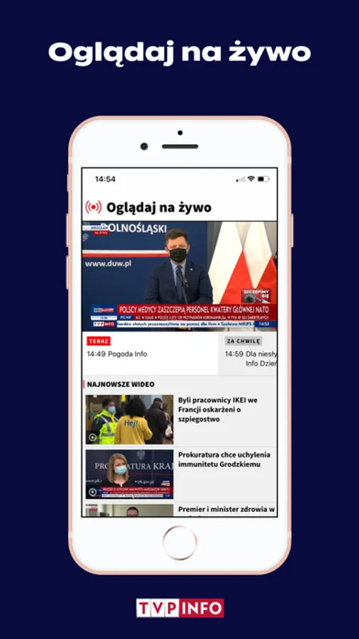 Pobierz aplikację mobilną TVP Info na swój telefon lub tablet. Dzięki jasnemu podziałowi na sekcje „czytaj” lub „oglądaj” w szybki sposób możesz dotrzeć do treści, które Cię interesują. Dodatkowo funkcja powiadomień sprawi, że będziesz zawsze na bieżąco. Teraz transmisję na żywo i najciekawsze wideo uruchomisz jednym przyciskiem „oglądaj”. Wolisz czytać? Przerzuć się na strumień „czytaj”, gdzie znajdziesz materiały portalu tvp.info.