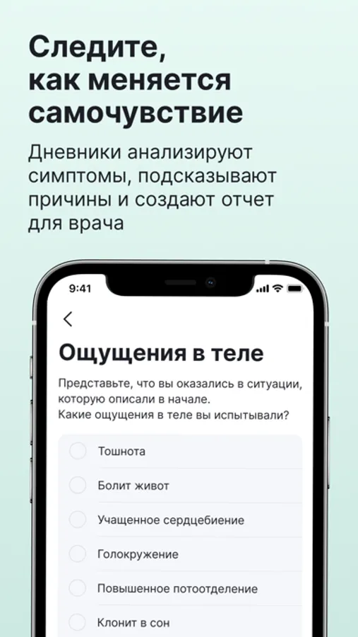 • Умные дневники здоровья — контроль и аналитика показателей здоровья: настроение, вес, давление, симптомы, стресс и другие показатели;