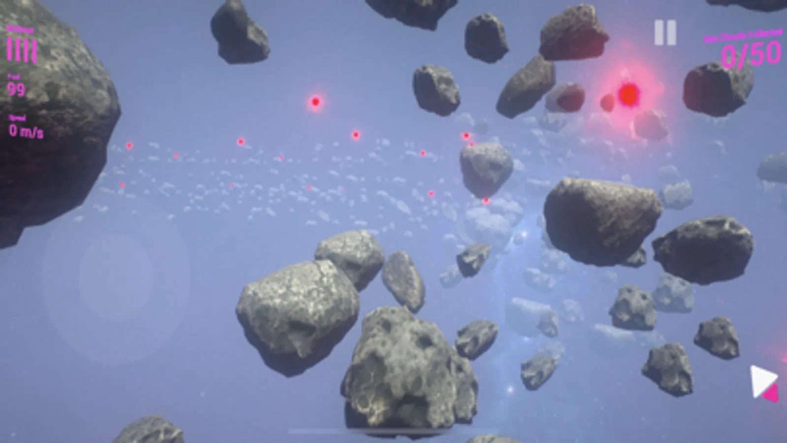 Explore the infinite space and collect red gas clouds to accumulate them into energy. Each gas cloud gives you 5% of your fuel. You can accelerate and maneuver, each acceleration takes 5% of your fuel, maneuvers take 1%-5% depending on your speed. If you run out of fuel, the ship will start to decelerate slowly.