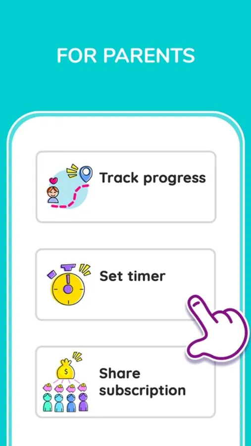 3. Parents area: set the usage timer and check your child's progress in real time.