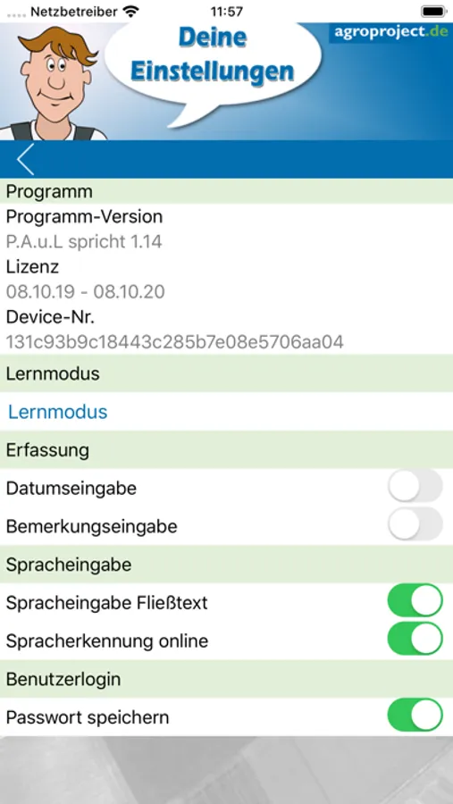Programm zur Erfassung von Tätigkeiten über Spracherkennung im Agrarbereich.