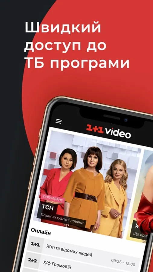 Online TV with constant access to news, broadcasts, films and serials of your favorite Ukrainian channels 1+1, 2+2, PLUSPLUS, TET, UNIAN, Bigudi. And its always with you!