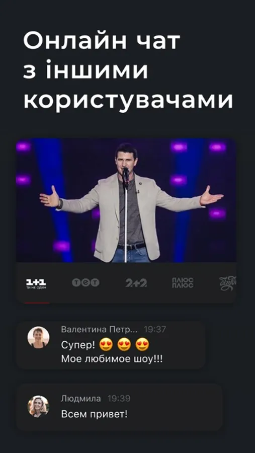 Each of the TV channels has its own style and is designed for a different target audience. 1+1 prepares such well-known TV projects as Voice of the Country and Dancing with the Stars for all viewers – entertaining shows with millions of viewers across the country. 2+2 will tell you all the latest news of the country and the world and will reveal all the secrets of football in the program Profutbol. Also available for viewing will be the series for real men of their own production of the channel – "Braty po krovi", "Mentivski viyny", "Oper za vyklykom" and many others. Bigudi – a channel for women that will make everyone feel. TET will be useful for anyone who wants light humor with the projects "Tanka and Volodka", "Odnoho razu pid Poltavoyu" and others. UNIAN will tell you about the most important news.