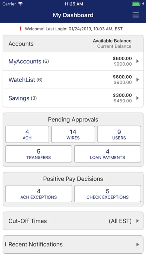 The TMS app will allow users to view accounts, make transfers, and approve wire transfers, ACH batches and positive pay exceptions.
