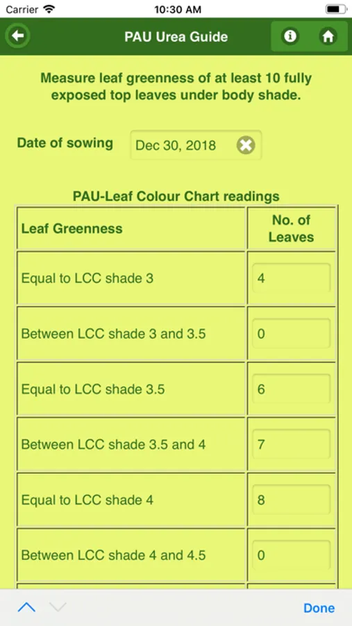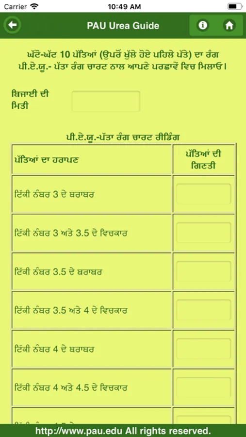 1. PAU Leaf Color Chart