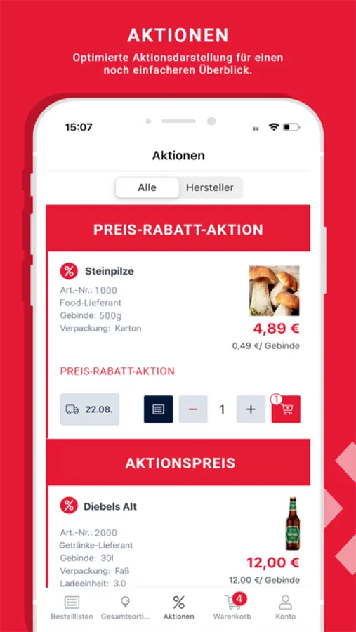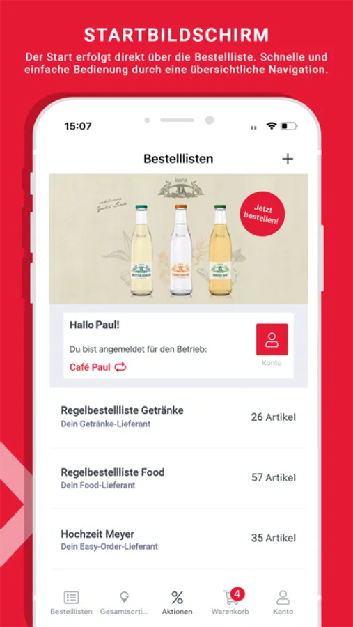 Mit unserer Bestell-App heben wir Deine Bestellung auf ein neues Level und erfüllen damit unseren Anspruch, Dich in Deinem Gastro-Alltag bestmöglich zu unterstützen. So kannst Du Dein Produktsortiment durchsuchen, Deine Bestellhistorie einsehen und beliebig viele Bestellungen mit nur einem Warenkorb bei all Deinen Lieferanten auslösen.