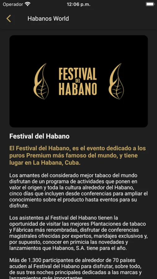 Le damos la bienvenida a nuestra APP. En ella podrá acceder a todas las novedades relativas a la marca Habanos S.A.