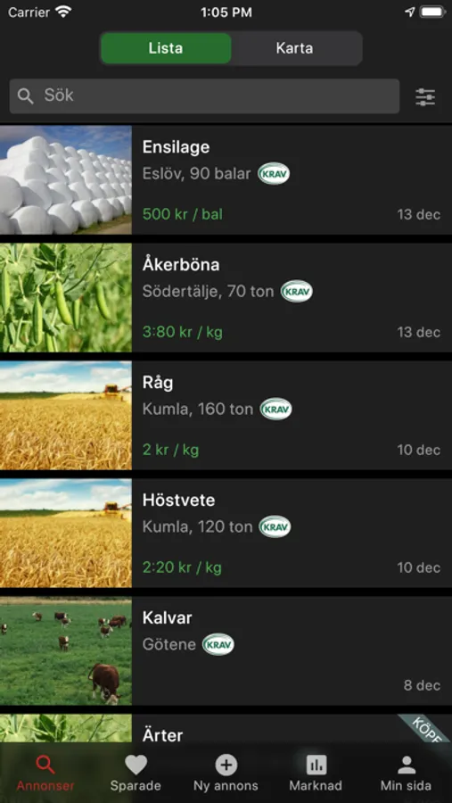 Med appen blir det enkelt att få överblick över utbud och efterfrågan på ekologisk spannmål, grovfoder, livdjur, gödsel, maskiner och tjänster.