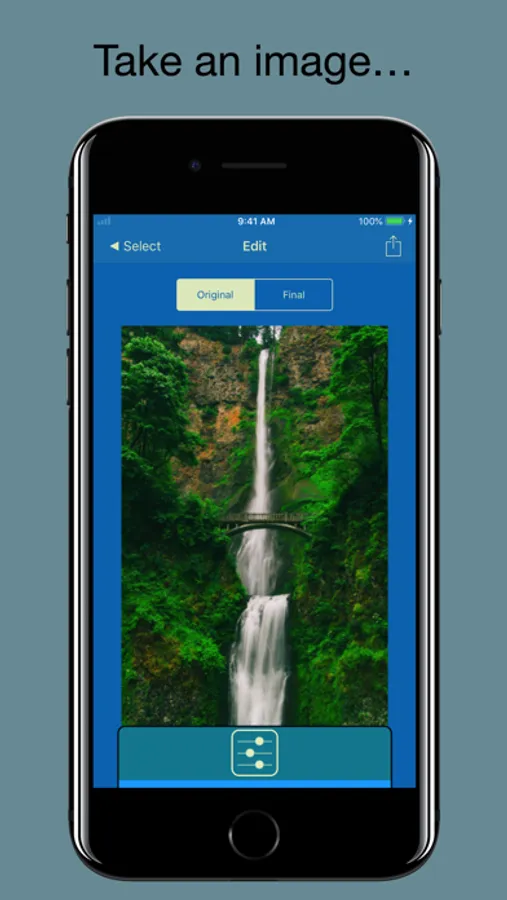 Use any image from your Library, or take a new image with your camera. When you’re done, share with Facebook/Twitter/Flickr (login required), or save to your library, print, message or email.