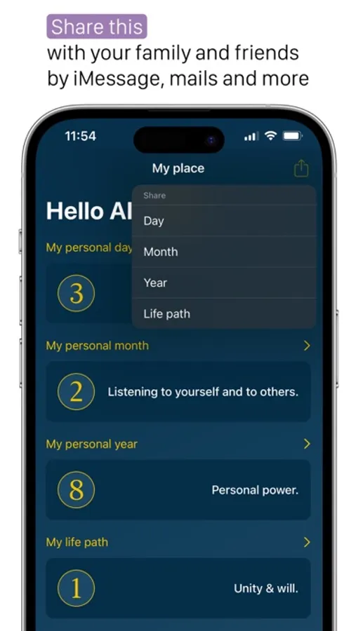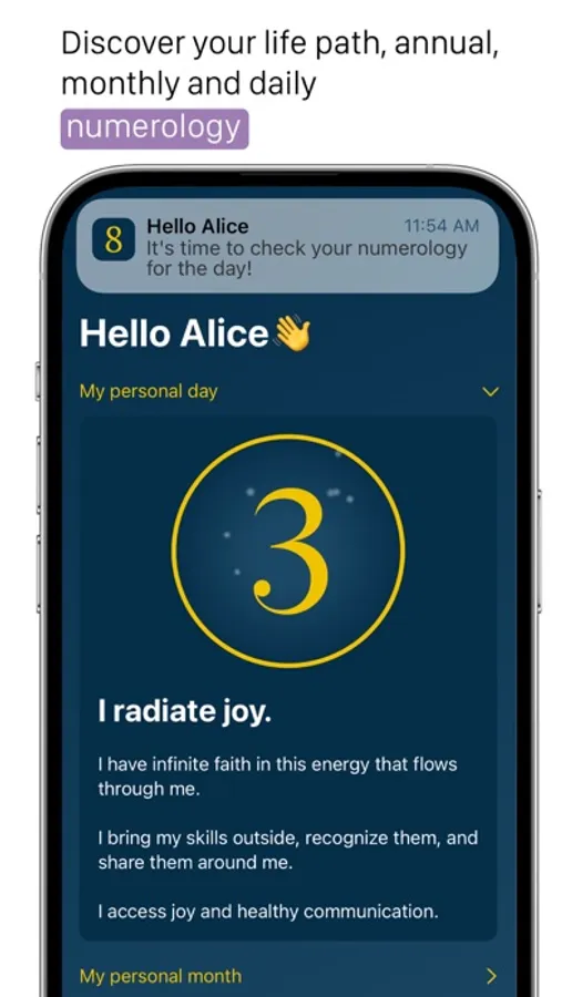 - Activate the notifications to receive your energy of the day. It is calculated on the basis of your birth date, the current year and the current month. This notification will accompany you throughout your day and give you the motivation you need.