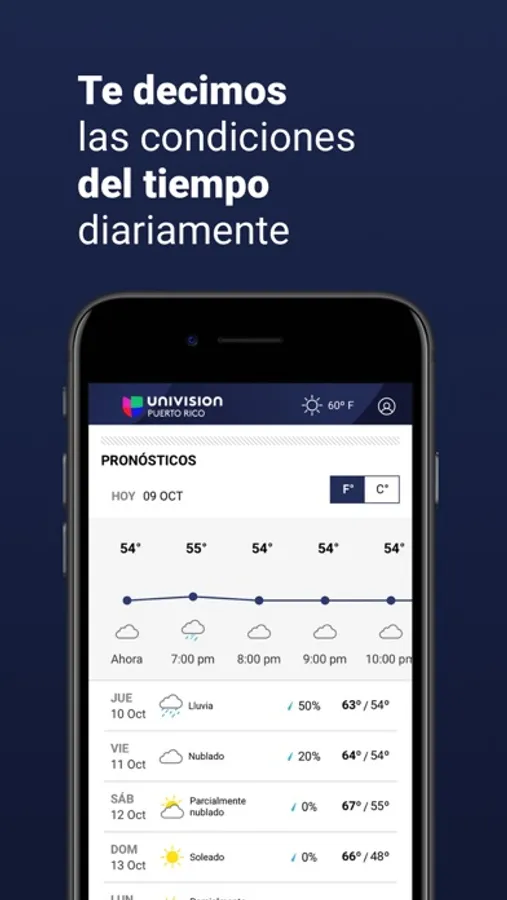 Pronóstico del tiempo con información del clima y condiciones meteorológicas.