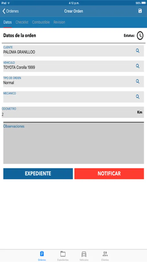 La orden de servicio está formada de datos, importes e imágenes y videos. Mismos que son desplegados y actualizados para consulta en una página web.
