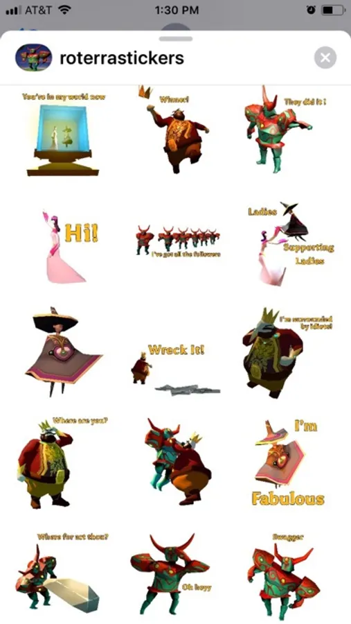 Make your chat messages more fun with the characters from the amazing puzzle games of Roterra. Stickers include Angelica the powerful princess that is fighting her way back to her throne. She is ready to Hi-Five your friends in chat anytime. Her evil brother has made himself King and has sent his bumbling Knights out after her. Angelica's Wizard friend is here too with the King's Griffon. Perfect for your daily text messages with friends.