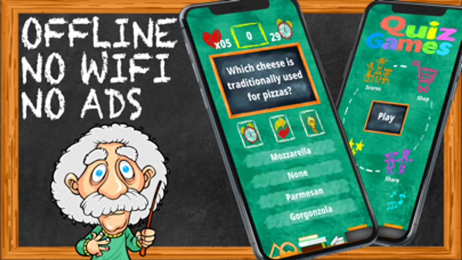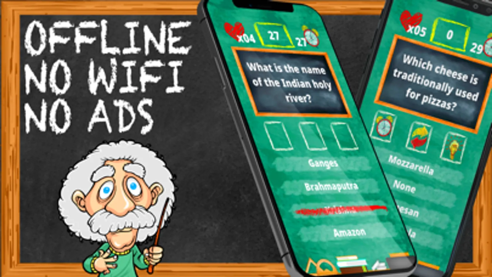 In this quiz games you have to answer general knowledge questions. Just read the question and tap the correct answer in this offline games. You have 3 possible options. Some questions are tricky in this games that don't need wifi, some need good memory others need to think. Like most brain games this no wifi games free will help you to train your brain and make you smarter. In this awesome games the faster you answer the more points you get, no internet games have 3 buttons to help you answer the questions. The time button in word games, will stop the timer. The next question in most popular games will skip the current one, and the other button in this gk quiz will remove 1 wrong question. This trivia games free can be played in english and Spanish, more languages will come in the future, no wifi games. Some quizzes require you to memorise others to think. Fun games that don't need wifi can be played in portrait mode with one hand. It's a no ads games free because you can play it offline when you don't have a connection. Also because is a low mb games you can install it and no remove other apps. Enjoy this no data games.