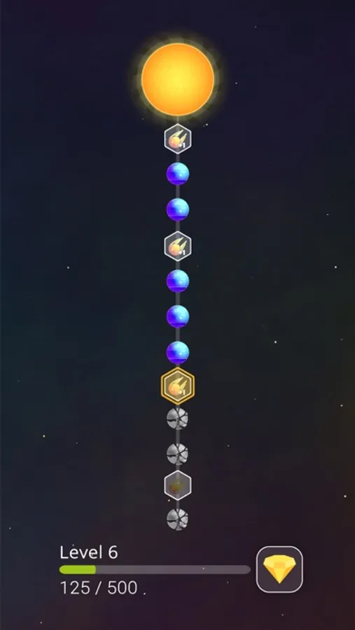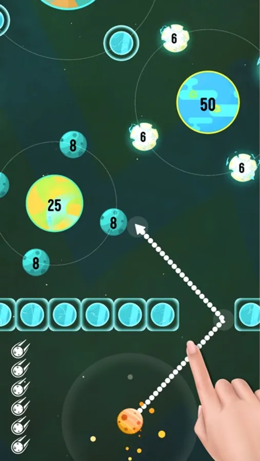 Blast off and watch as the chain of comets hit, bounce, and destroy asteroids and planets! It's oddly satisfying!
