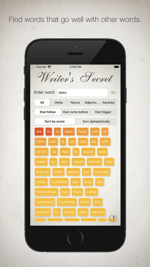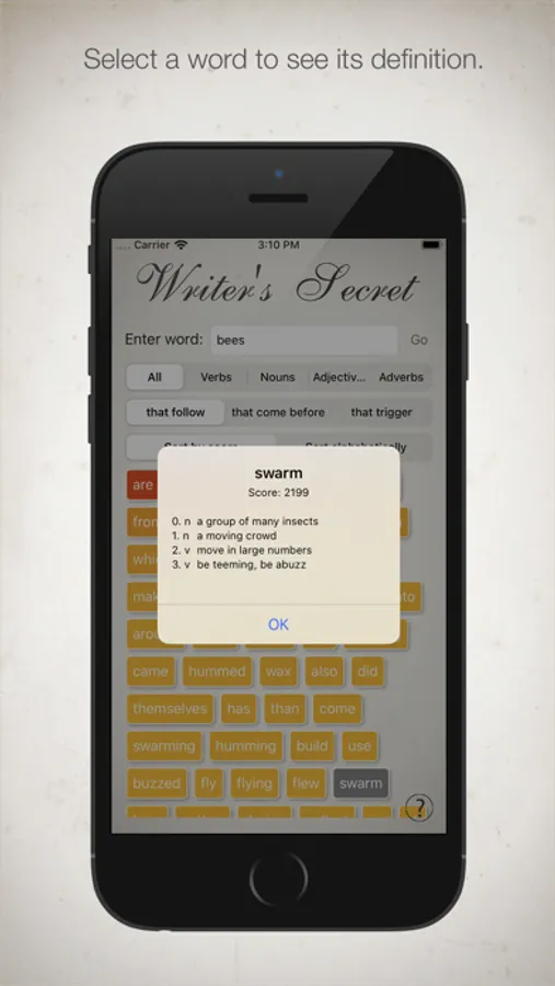 Writer's Secret is a tool for helping you to find the right word. No, it's not a Thesaurus, though we think you'll pretty quickly be using it just as often!