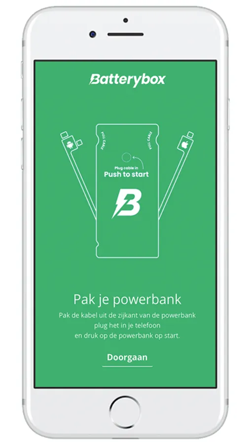 With a growing group of partners and users we are tackling this problem. How? We designed Batterybox: A network of loading stations in a growing number of cities throughout the Netherlands from which you can rent a powerbank just by using an intuitive app on your phone. Is your phone fully charged again? Then feel free to return it to a Batterybox location of your choice. It's as simple as that!