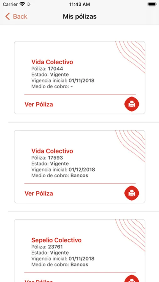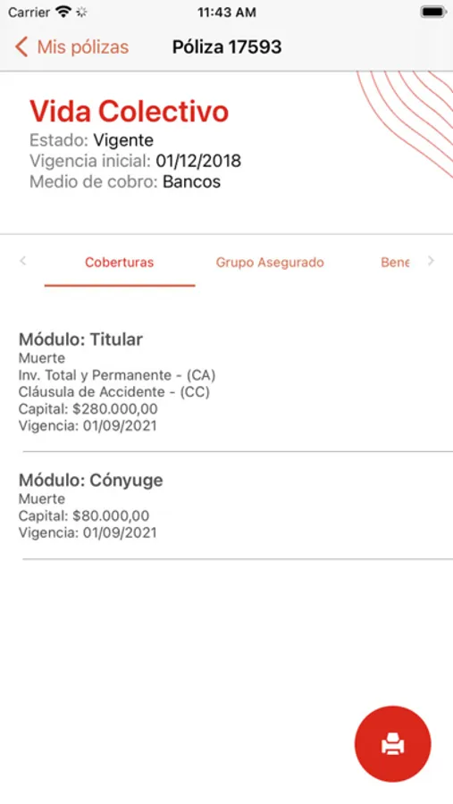 - Ver el detalle de tus pólizas, tus coberturas y beneficiarios
