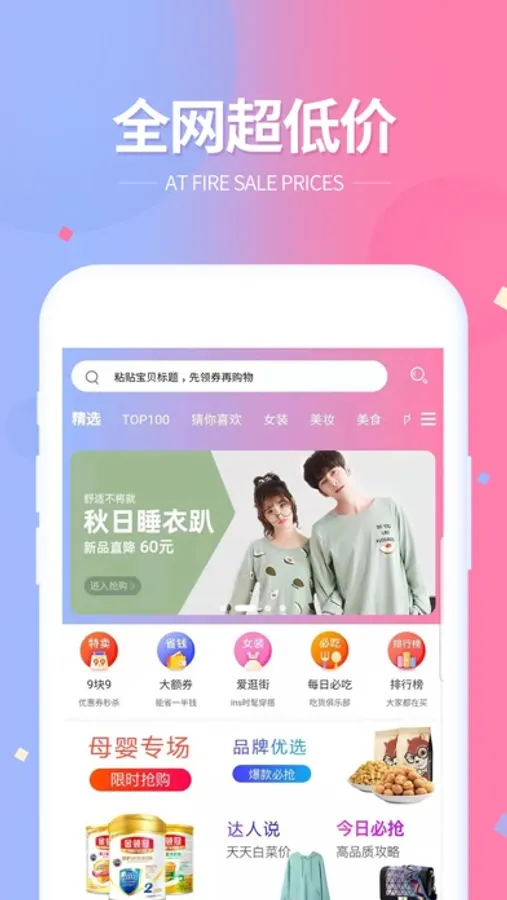 潮流女装、鞋包配饰、美妆护肤、家居生活、母婴健康、零食数码等等,每天更新!