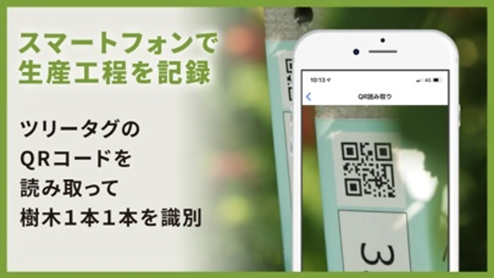 ツリータグのQRコードを読み取って樹木1本1本を識別。