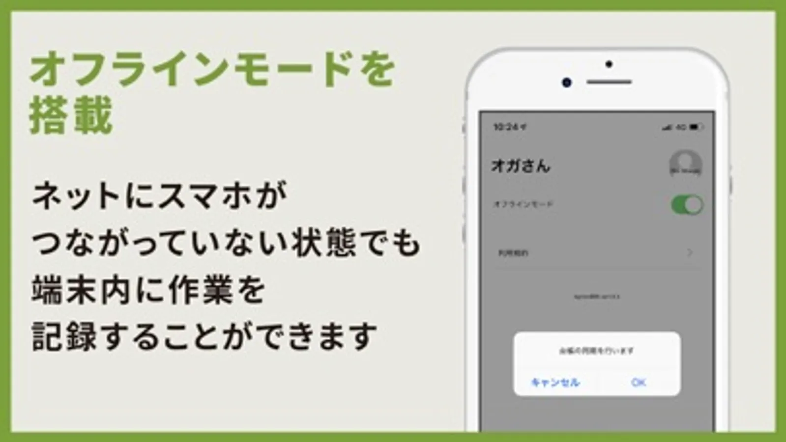 インターネットにスマートフォンがつながっていない状態でも端末内に作業を記録
